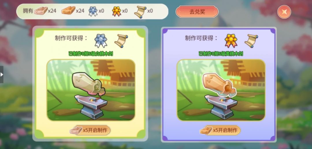 消耗不同的木材可以选择制作白桃木剑或黄桃木剑。