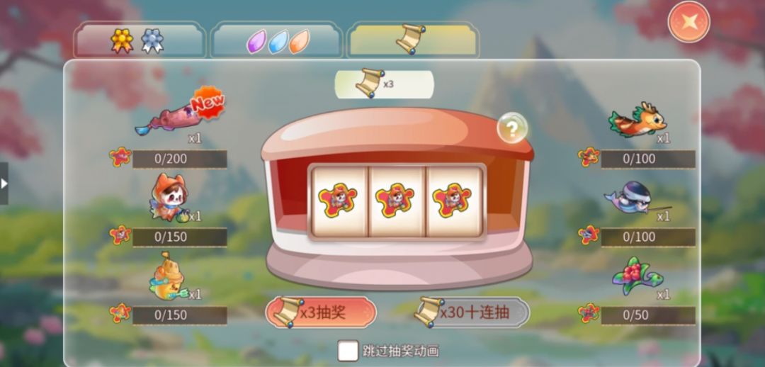 使用卷轴可以进行抽奖,可以选择单抽和十连抽,集齐对应的碎片可以获得对应的鱼儿。