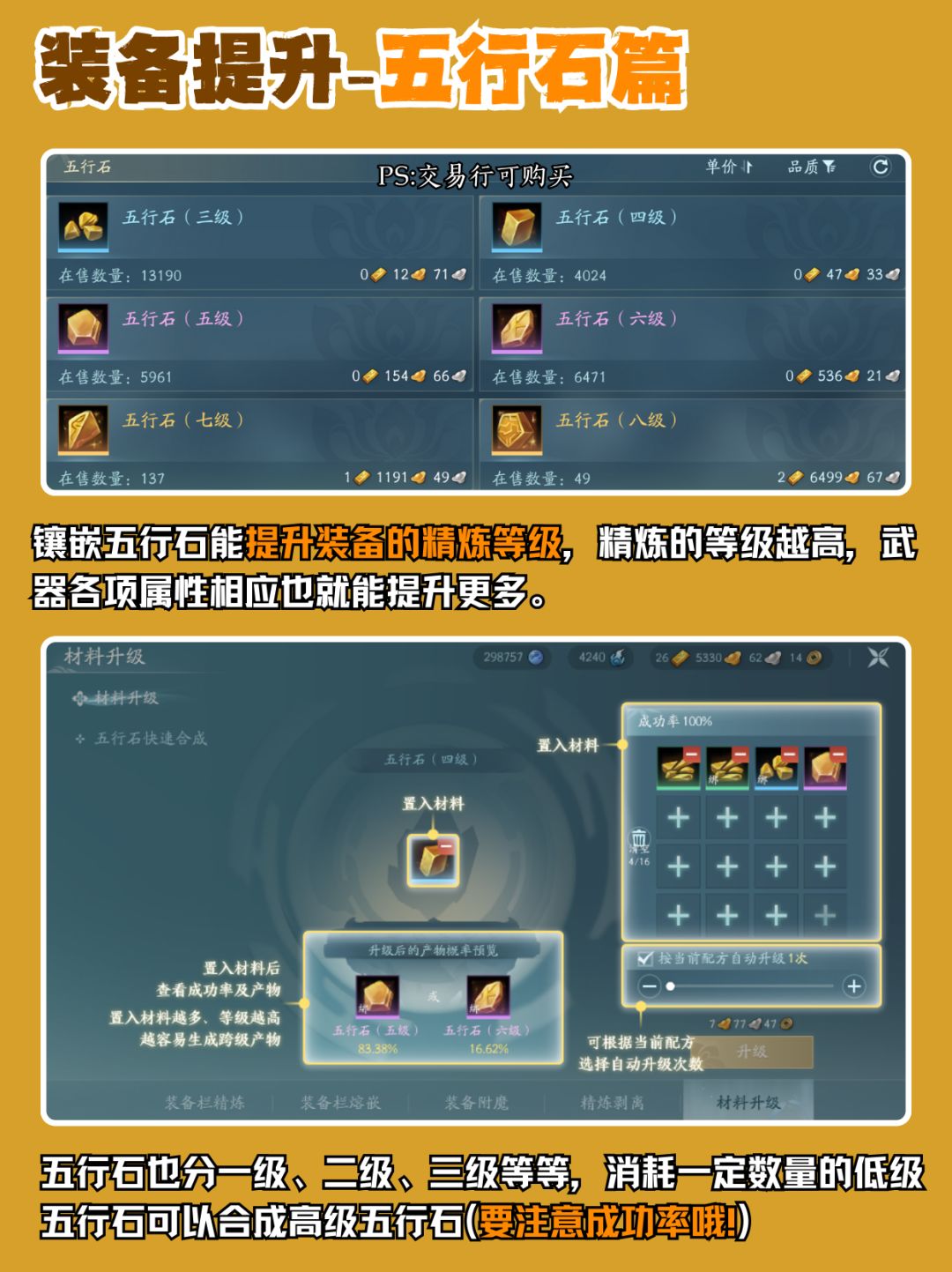 拿到装备后如果不进行精炼、镶嵌、附魔,那就无法获得更强的属性提升,也不能激活武器上的五彩石属性,俗称「洞洞装」。本篇就带大家来浅看一下如何提升装备吧