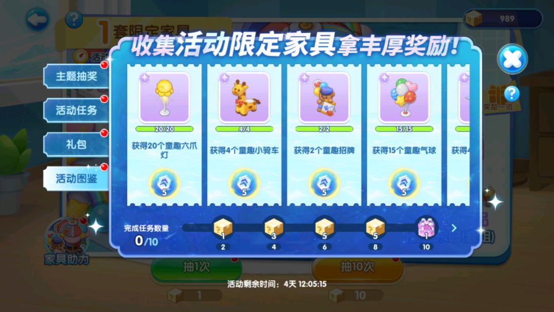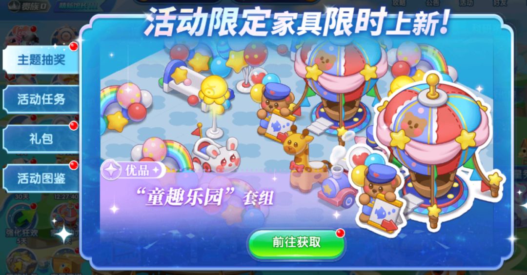 童趣乐园家具单品可通过主题抽奖获得,使用快递箱道具即可参与抽奖,领取家具好礼~