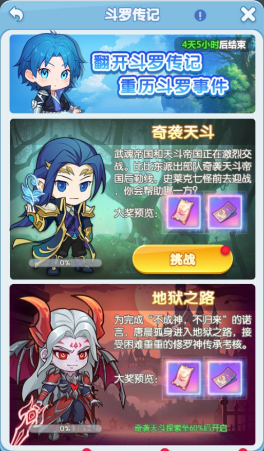 本次斗罗传记将开放【奇袭天斗】和【地狱之路】两个事件。