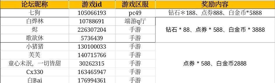 玖儿的暖心鼓励(5名):点券*588、白金币*2888