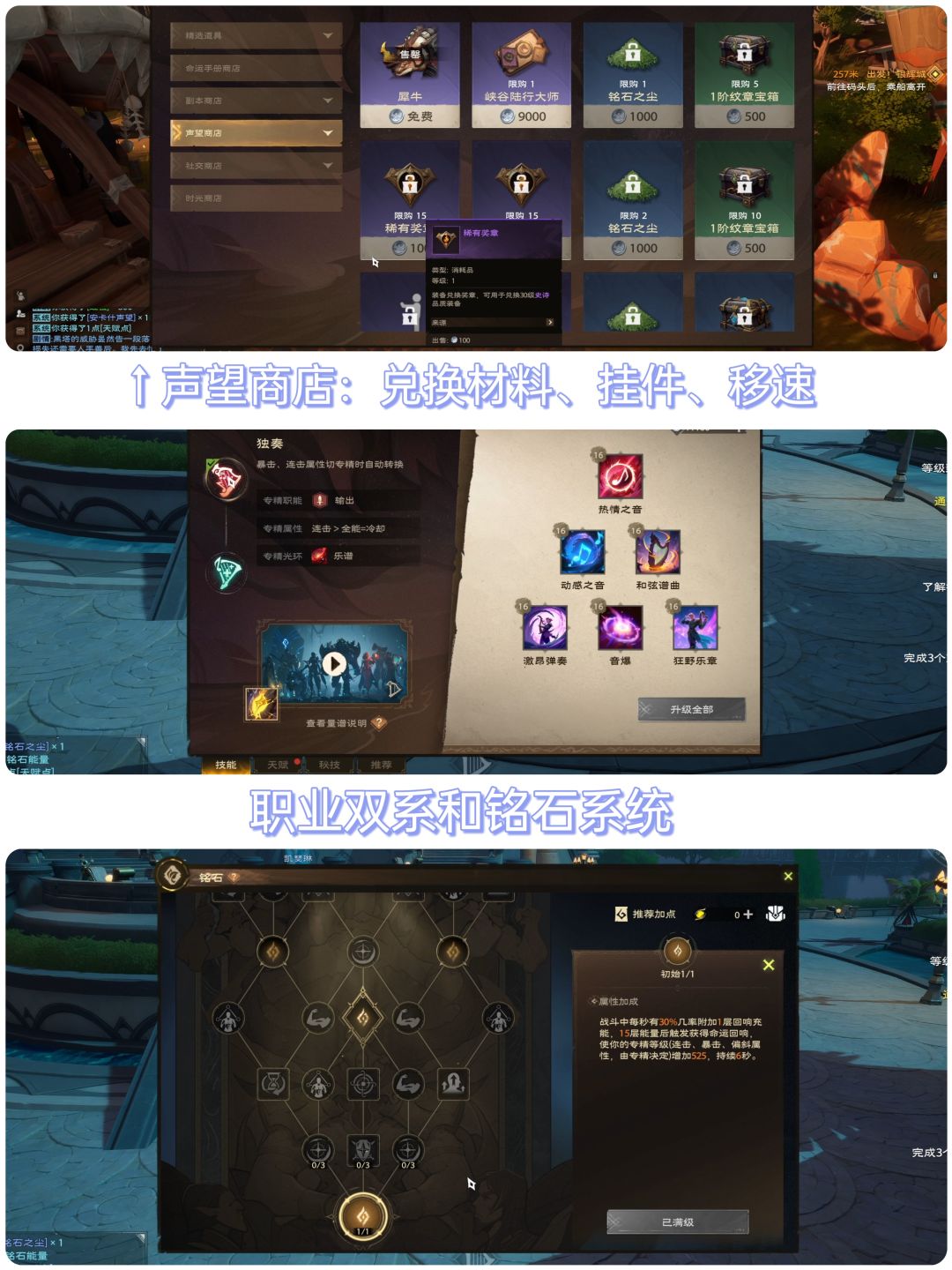值得一提的是,铭石系统也进行了调整,游戏里铭石涉及到角色的数值属性,而在之前想获得铭石,那么就需要花费大量的时间去肝任务。但现在,去掉了需要肝的任务中铭石的奖励,调整为增加日常活跃和世界BOSS的铭石产出。很多玩家应该深有体会,不少MMO都有着逼肝的通病,本意是鼓励玩家探索,但过肝就会让玩家觉得是在坐牢。