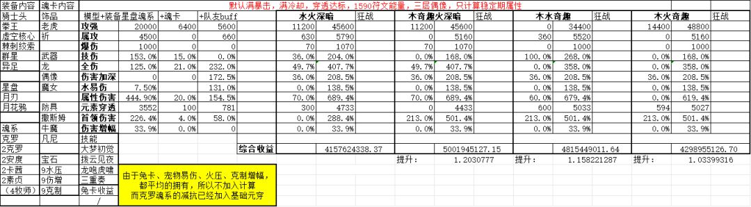 至于为什么没有靓仔表里面那么多提升,是因为这里按的通用洗练算的,也就是不洗属攻的那种;