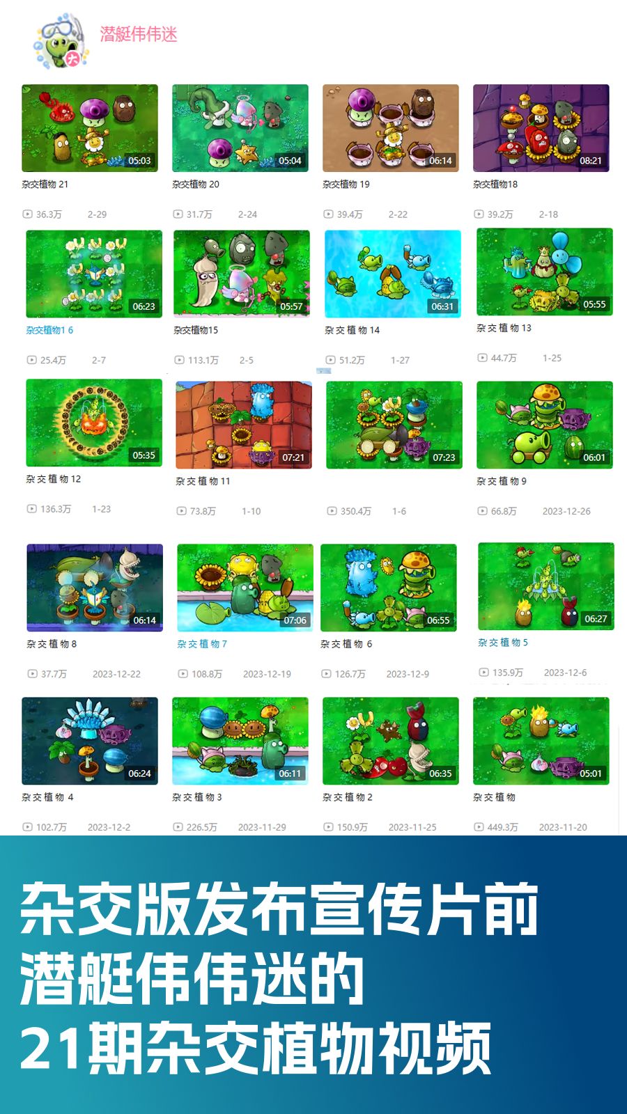 2023年11月底,命运的齿轮开始转动,潜艇伟伟迷发布视频“杂交植物1”,直到24年2月底高强度更新21期,仿佛暴风雨前的宁静,杂交植物系列视频的更新戛然而止,潜艇伟伟迷转头开始研究玩法,杂交地图、杂交传送带、金色套卡、随机植物,他的野心并不满足于杂交植物,1个半月时间里,他更新36期视频拓展玩法类型,演示植物用法。4月15日,经过六年的耕耘与打磨,杂交版宣传片正式问世,当代孟德尔和他的杂交植物终于迎来了破土而出的这一天。