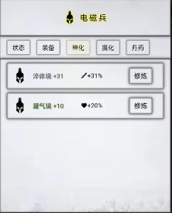 可以在这里强化你的士兵,包括投喂丹药(消耗丹药)和神话魔化(消耗信仰)