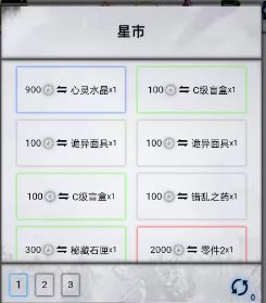 是星币商店,通过星币购买盲盒,神性物及部分蛮荒装备,其价格如下: