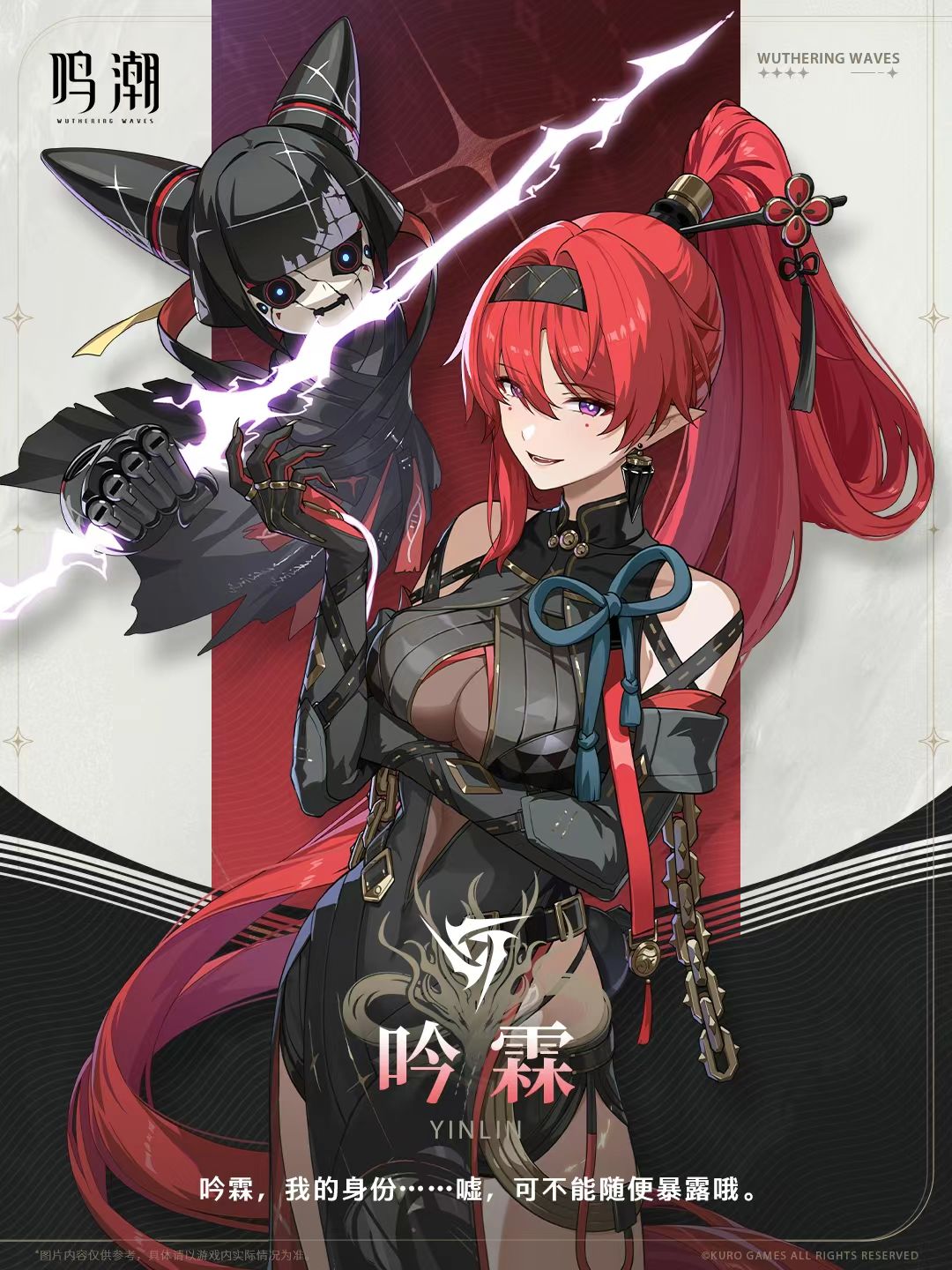 吟霖的核心机制就是通过自身的普攻和共鸣技能叠加被动【审判值】,当【审判值】满后,吟霖的重击会被替换为【千面魅影】,同时消耗所有【审判值】攻击目标,如果目标携带【缚罪标记】,那么该标记会被替换为【惩罚印记】持续十八秒.(Tip:【缚罪印记】的挂取:吟霖的普攻,共鸣解放,变奏技能命中目标时,都会附加该印记),携带【惩罚印记】的目标在受到伤害时会降下【审判之雷】也就是协同攻击,每秒可以触发一次。(当目标身上有一个特殊的紫色三角形,就意味着已经挂上【惩罚印记】)吟霖的协同攻击时可以适配所有主C的,没有卡卡罗的玩家也非常建议抽取。