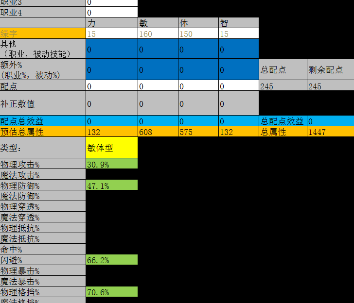 敏体补正,额外增加闪避,物理格挡,攻击,物理防御。
