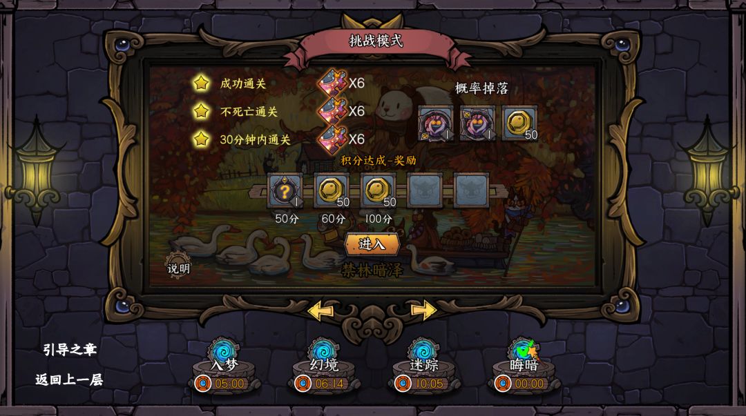 挑战模式与冒险模式的不同之处就是,冒险模式下冒险家可以通过养成猫猫头来进行关卡的碾压(符文、武器、装备、技能等),而挑战模式是需要通过冒险家挖掘更深的策略和在时间上的把控来进行通关的,在这“变态辣”难度的关卡中你不单单可以体验到不同核心关卡的策略性带来的体验,还有可爱喵喵怪营造出来的假象,千万不要被它们蒙蔽了喔