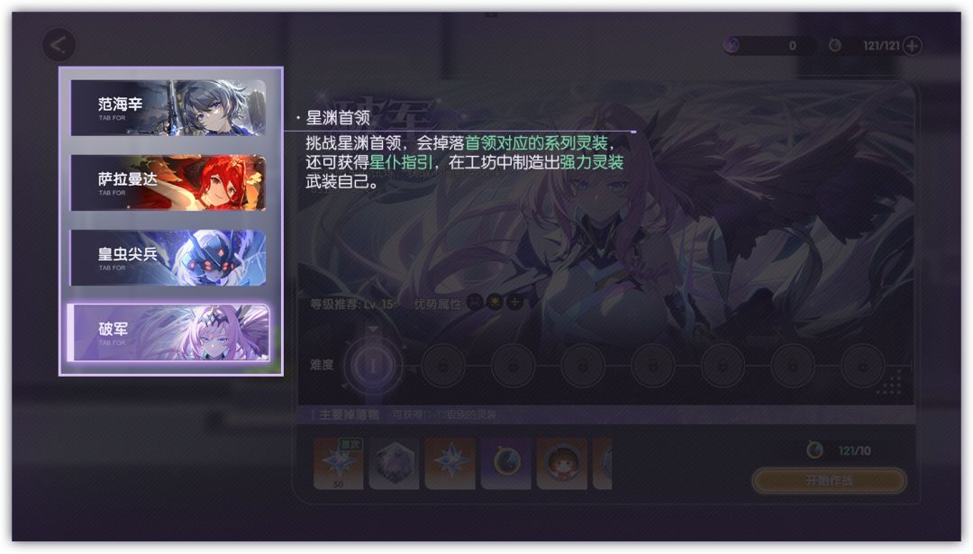 挑战星渊首领,获取能够强化灵衣的「灵装」。使用稀有掉落物「星仆指引」,还可在「工坊」中制造更为强力的「灵装」!