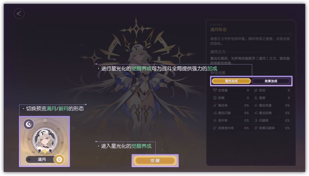 「星光化」能力可以让星罗化身为满月/新月两种姿态,为战斗全局提供强力加成!