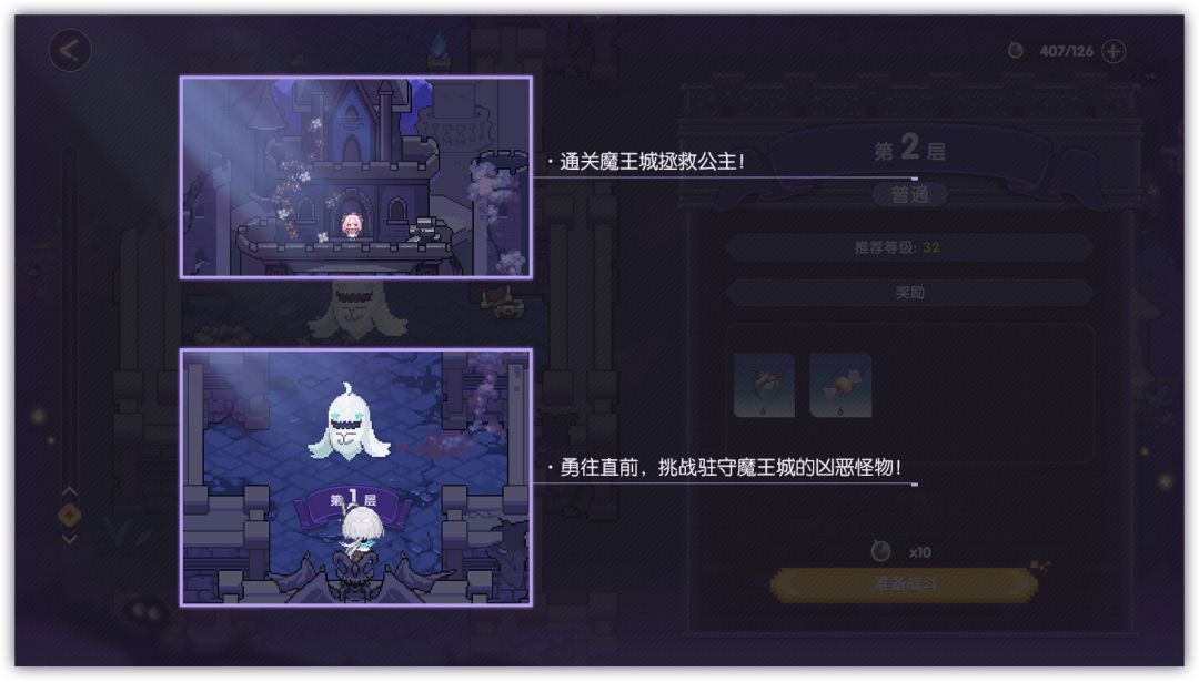 勇闯魔王城,拯救被俘虏的公主吧,通关每1层都将获得道具奖励哦!
