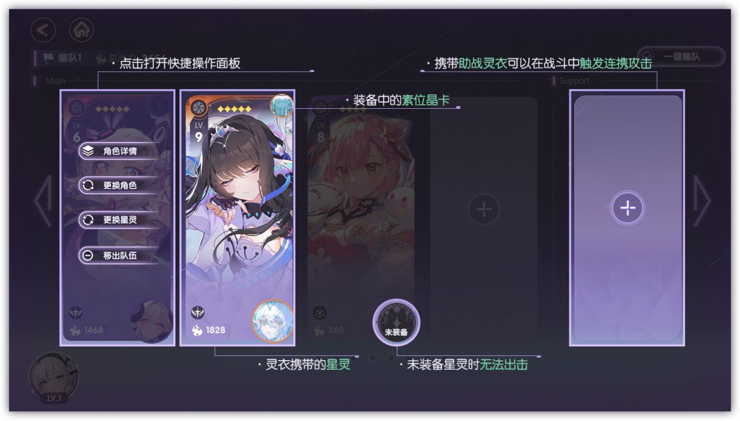 所有「灵衣」必须装备「星灵」才可出击。同时,还可通过装备「素位晶卡」、「灵装」进一步提升战斗力!