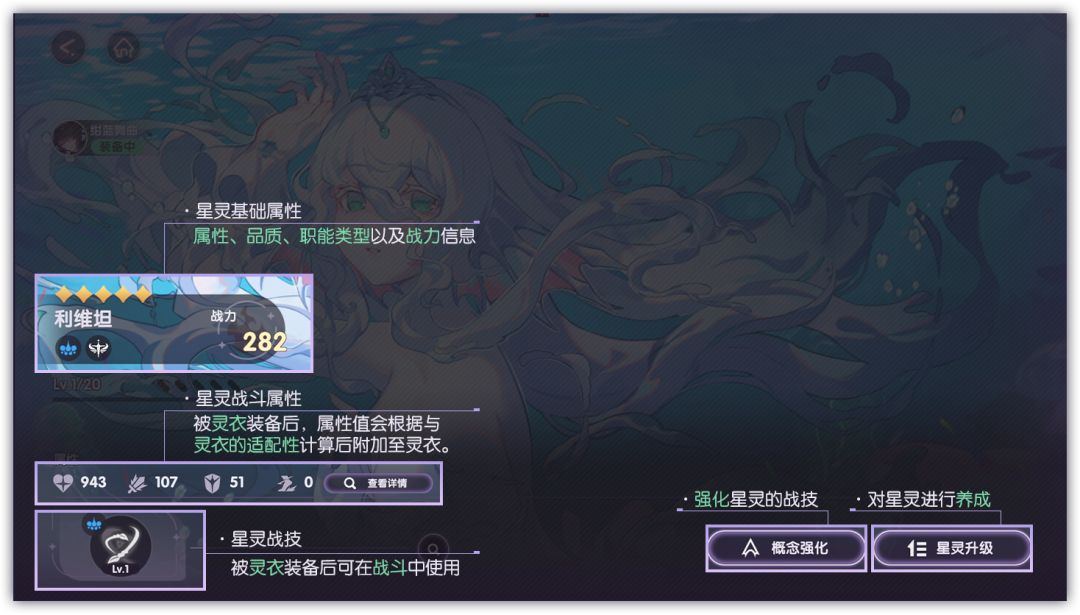 「星灵」拥有独立的属性、职能类型。装备在「灵衣」上后,其属性值将根据与灵衣的「适配性」按比例附加至灵衣,适配性越高,加成越大。除此之外,「星灵」还会为灵衣提供星灵持有的「星灵战技」!