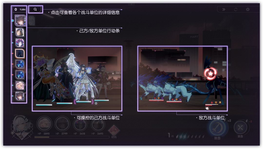 战斗时,敌我双方将按速度高低依次行动。可通过「行动条」查看双方的行动顺序。