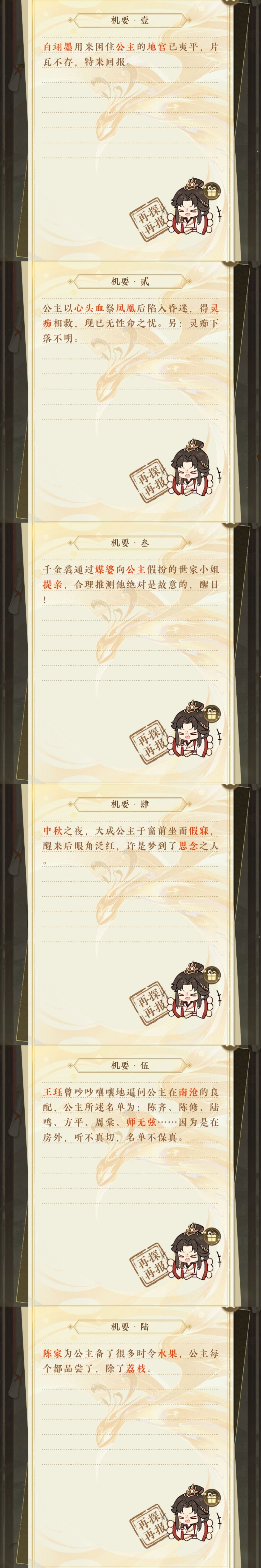 公主殿下日安,今日奉上本期【百晓逢故】版本的情报汇总。