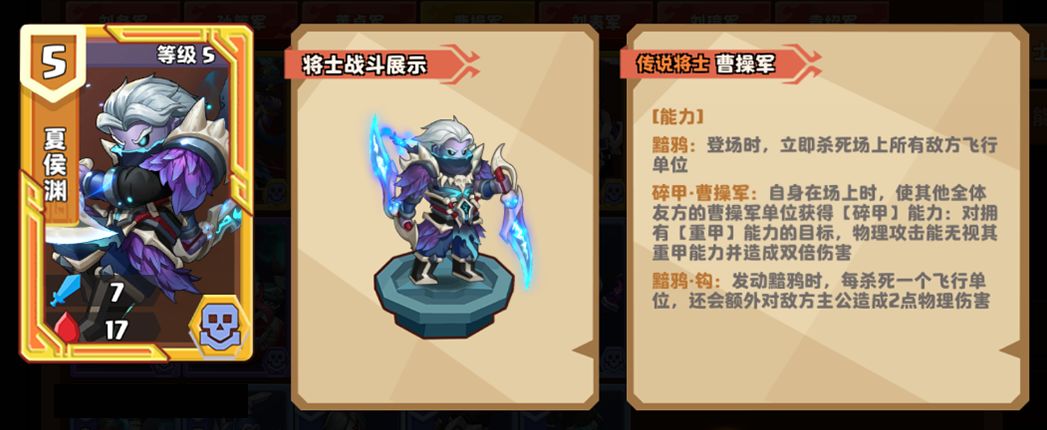 当高览的数值飞升到52/52后,主公的思路就非常清晰了:把高览运送到boss面前。高览数值上是无敌的,所以需要防守的就是能秒杀高览的机制型将士:夏侯渊和吴兰了。