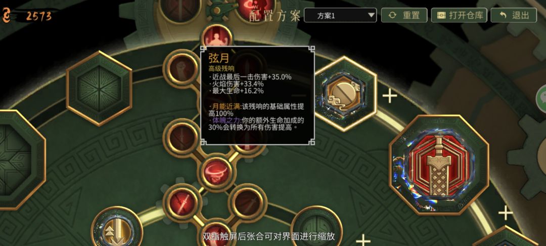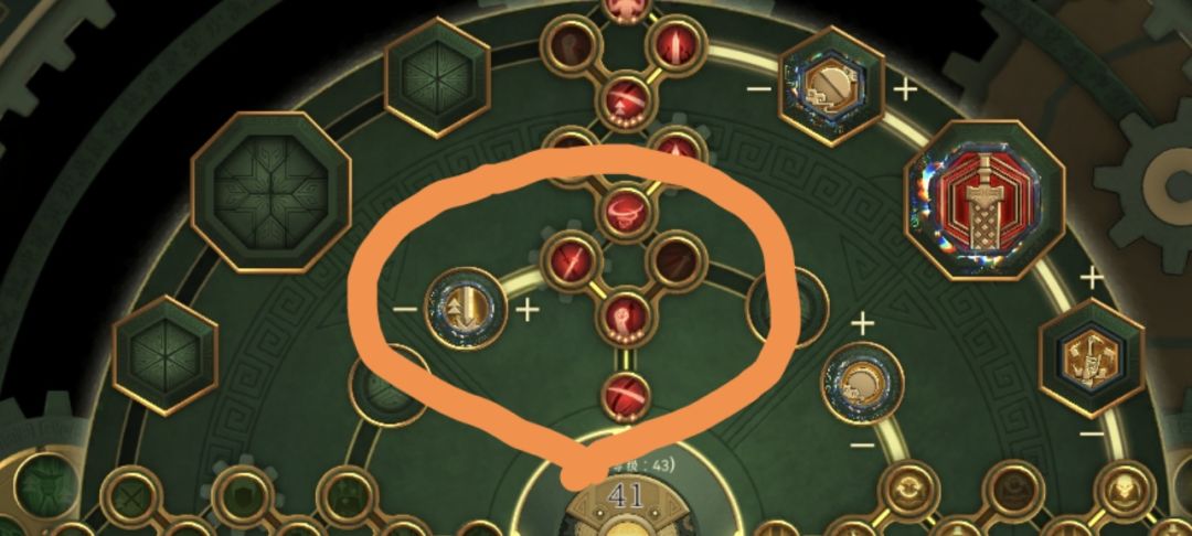 如果要装终极残响,那就得点两条技能线,我这里点得是红和黄,所以我终极残响是红和黄中间的那个坑里