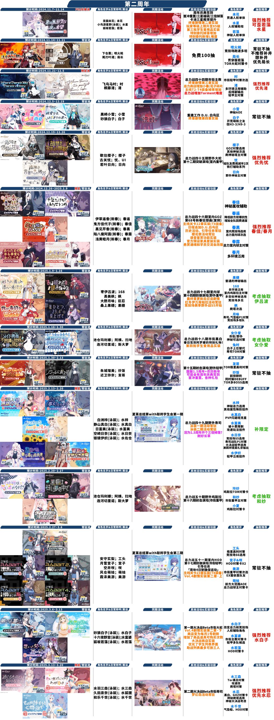 10.14-10.20/28按照千里眼是渚头,但是限定连发了,应该会把小雪提前或者复刻一个角色分开一下?