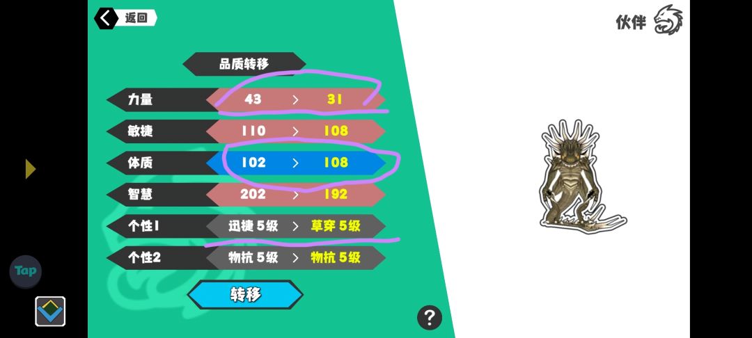 因此,我们要想抓能拿来进化的宠物,首先要看宠物个性是否够高(这个初步决定了他的绿字成长)