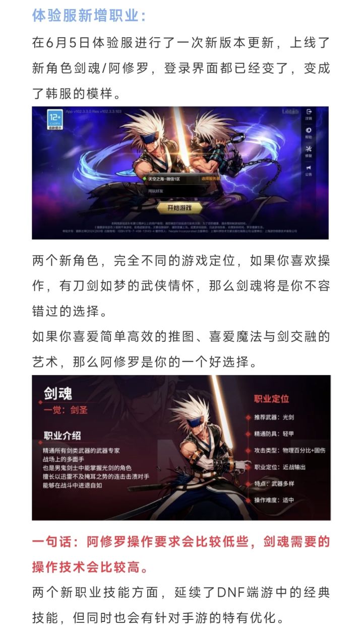 《dnf手游》体验服上线新职业,剑魂/阿修罗