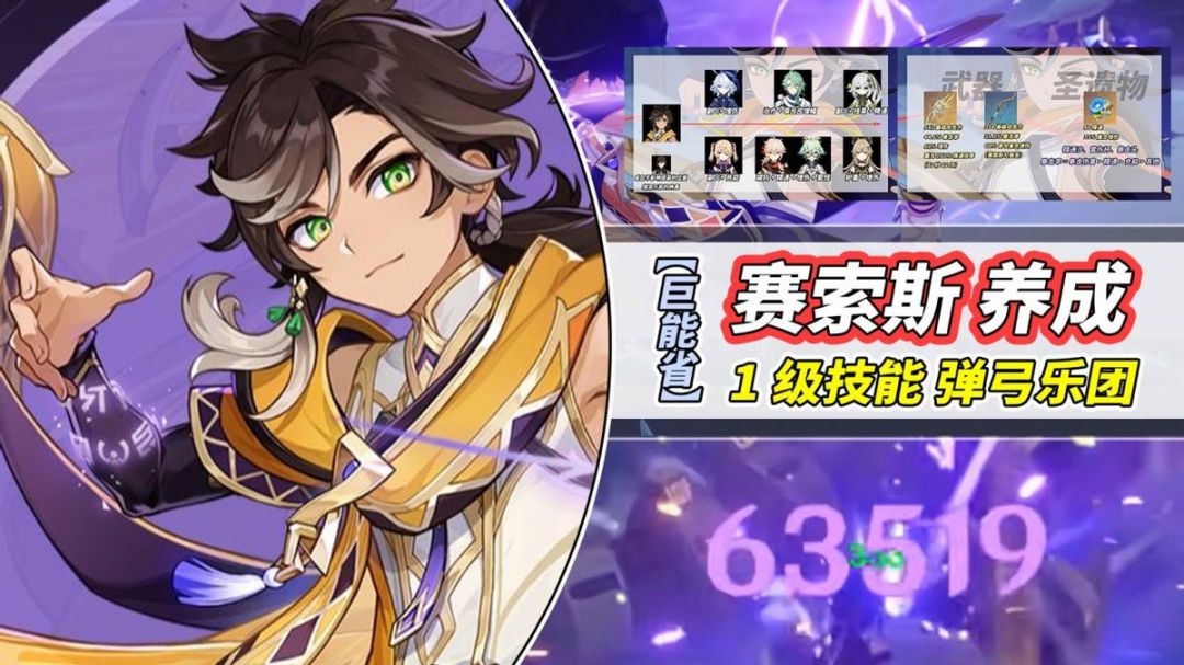 无纳西妲的玩家,绮良良其实是很好的替换选择,直接开猫猫车撞敌人,叠盾的同时还可挂草,这个元素量足够赛索斯激化使用了。
