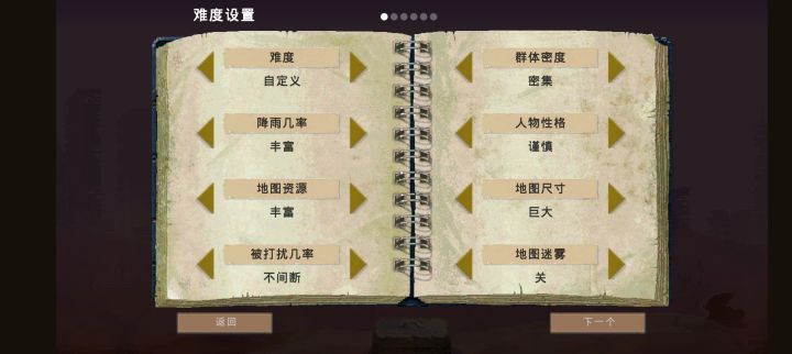 ②地图资源设为丰富,因为游戏上手难度高,所以建议开局先往最简单的玩法调,等熟练了再增加难度,其他看自己搭配