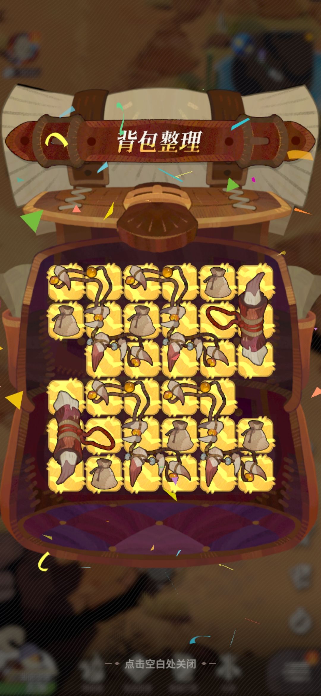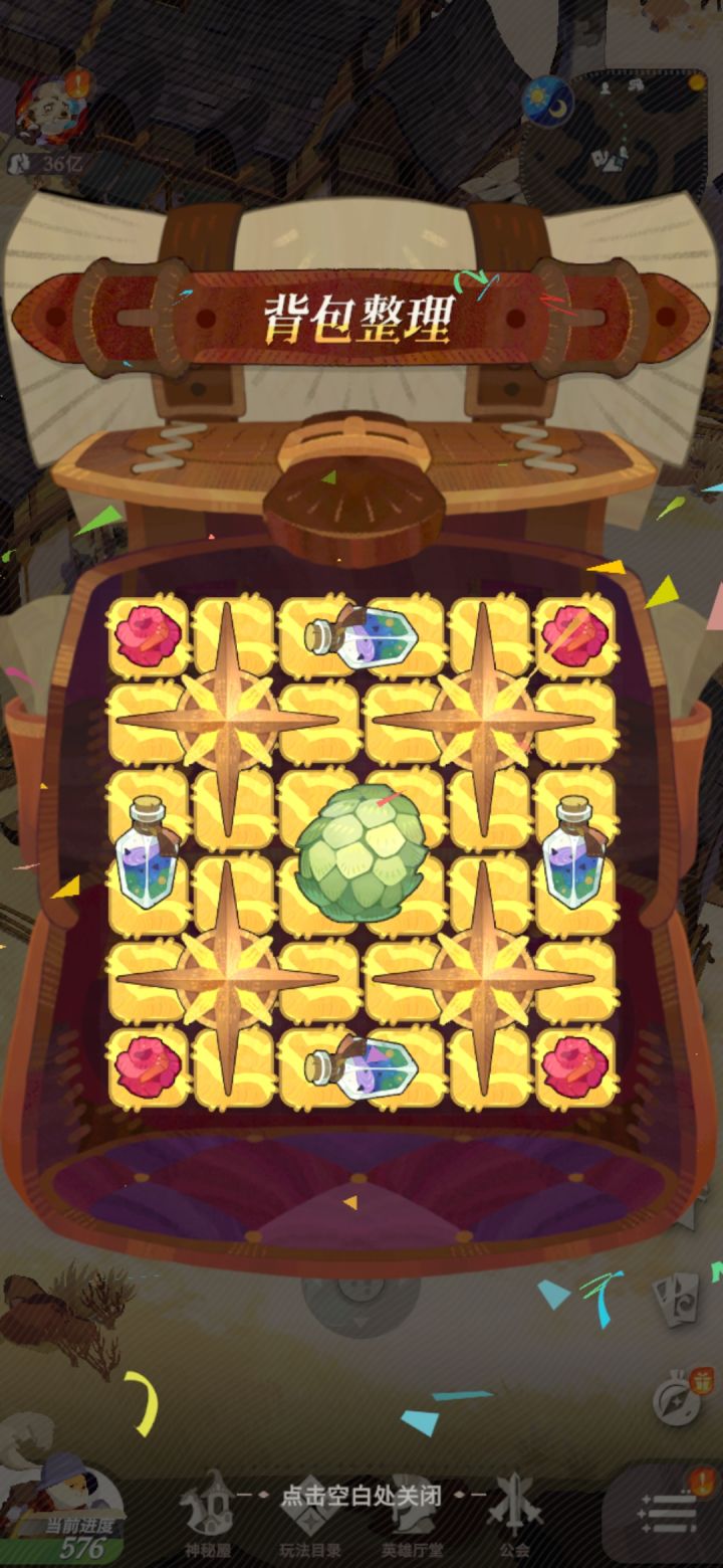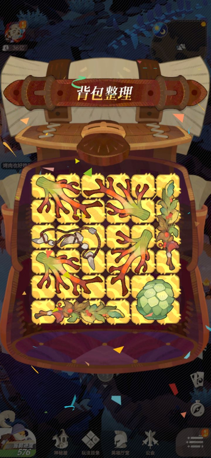 再加,势力任务整理背包,忘了截图了,但是最后形状是,👍形状呈风车状放中间,棒子放一圈