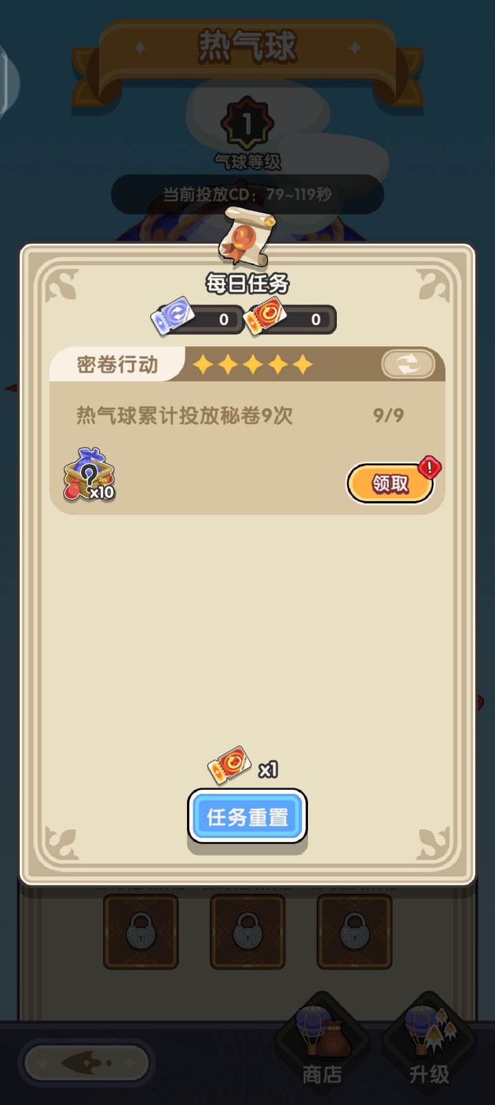 任务∶热气球累计投放秘卷9次