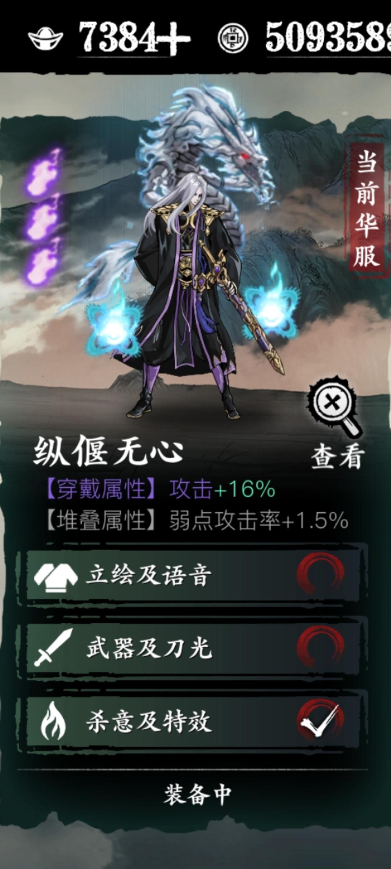 武器可以带罪武洗蛮牛、天道之类,我伤害够了就随便带的,雅致华剑比较帅,紫色衣服紫色武器,这很紫冥