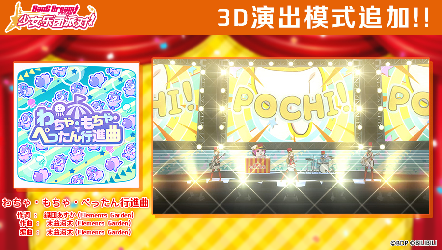 歌曲《わちゃ・もちゃ・ぺったん行進曲》将在本次维护后追加3D演出模式以及SPECIAL难度并开启关联的纪念任务!