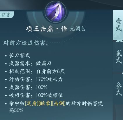 攻击距离要比项王击鼎远,伤害和项王击鼎叁式差不多,但是没有额外控制。PVP点绝篇,PVE点秘章。