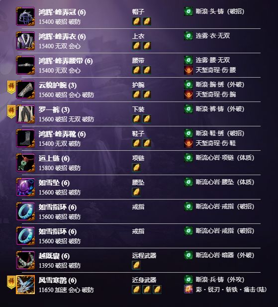 常规小橙武橙戒的平民毕业套,会心能达到21,破防达到71,常规好毕业