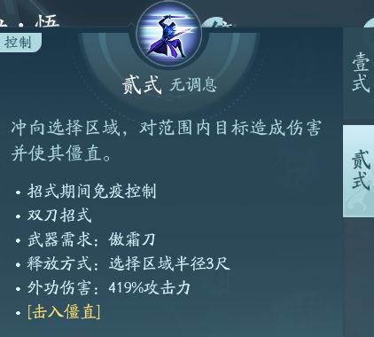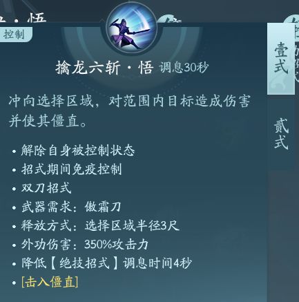 传说中霸刀能劈出三室一厅的技能,可以劈出一条刀墙分割战场也可以隔开敌人和自己的位置,保奶首选技能。PVP点绝篇,PVE点秘章。
