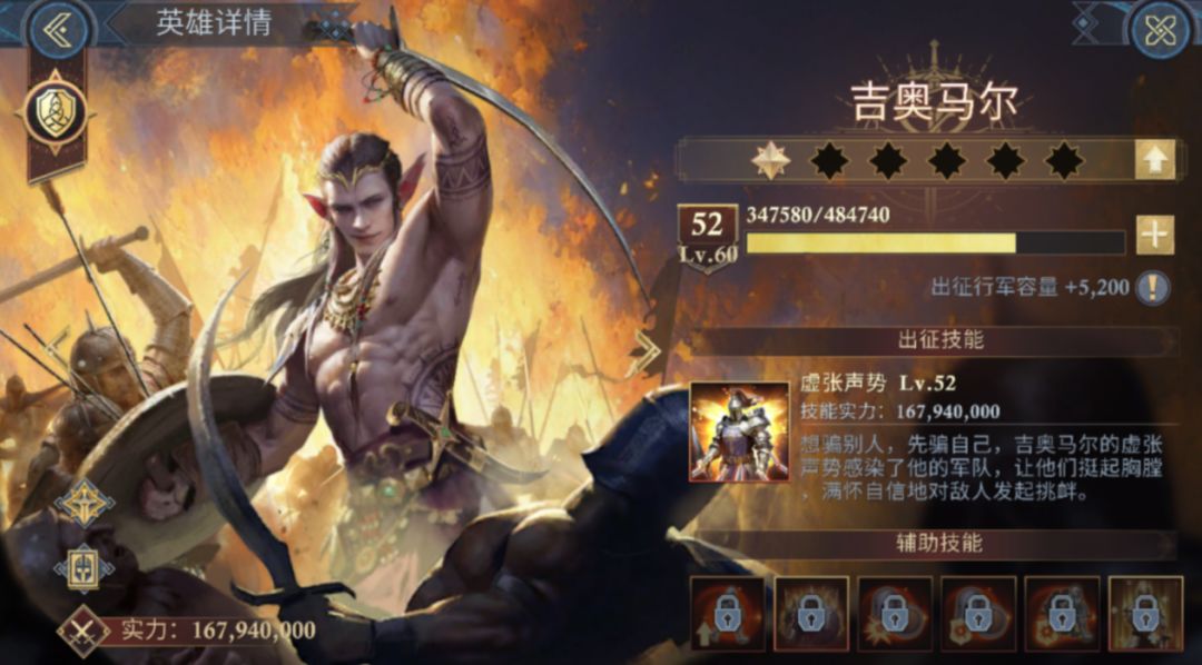 这队英雄出场时间比较早,许多朋友们都有较高的练度。元素队虽然比较强,但这支队伍在现版本也不弱,可以继续玩。吉奥马尔可使己方最高等级队列发动嘲讽,可吸引敌方普攻,己方骑兵可以有更好的输出环境。另外在己方步兵受到攻击时可概率对目标发动反击,有机会直接对敌方后排造成伤害。