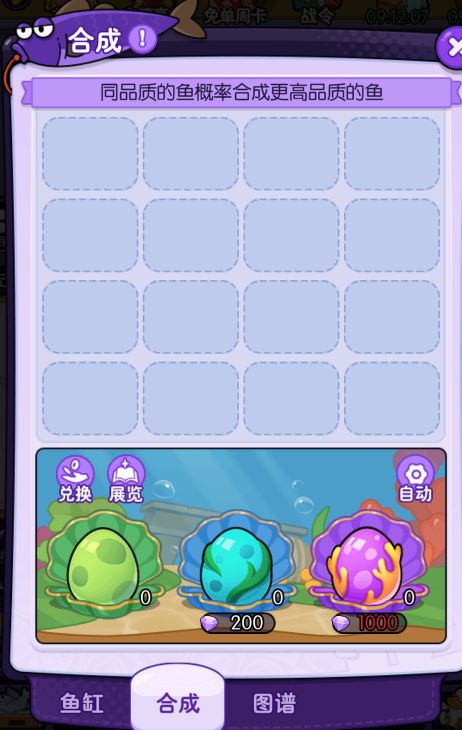 3.合成鱼时,可获得高阶品质的鱼,或高阶品质的鱼蛋碎片