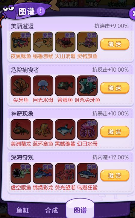 2.激活组合指定全部鱼,可激活图谱组合获得属性加成