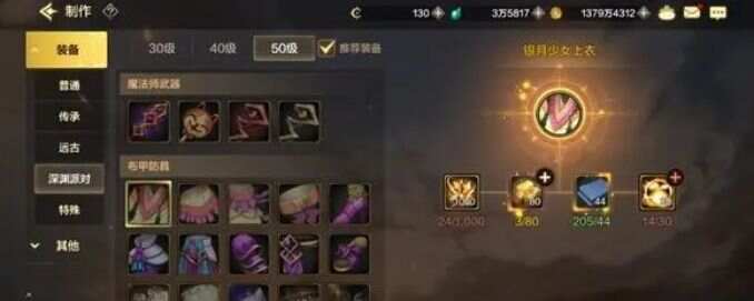 4、获得的深渊精粹是非常重要的史诗装备制作材料,1000个相同部位的深渊精粹可制作指定部位的史诗装备。点开主面板上的制作-装备,选择深渊派对即可看到各种装备制作所需要的材料。