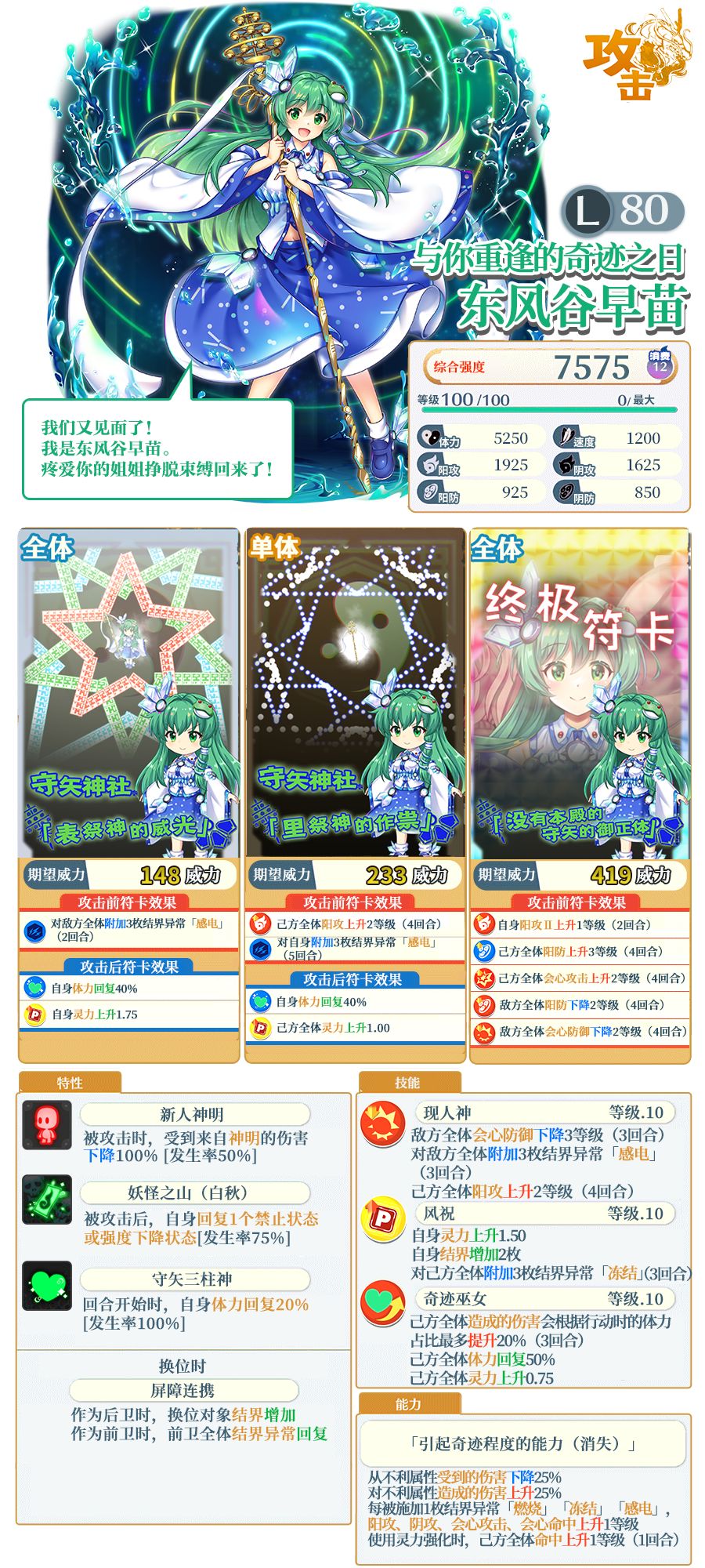※「[与你重逢的奇迹之日]东风谷早苗」需要使用同名伙伴或者「灵之替身」进行界限突破。不同泛异记号的伙伴及「灵之替身」外的其他替身无法对其进行界限突破。