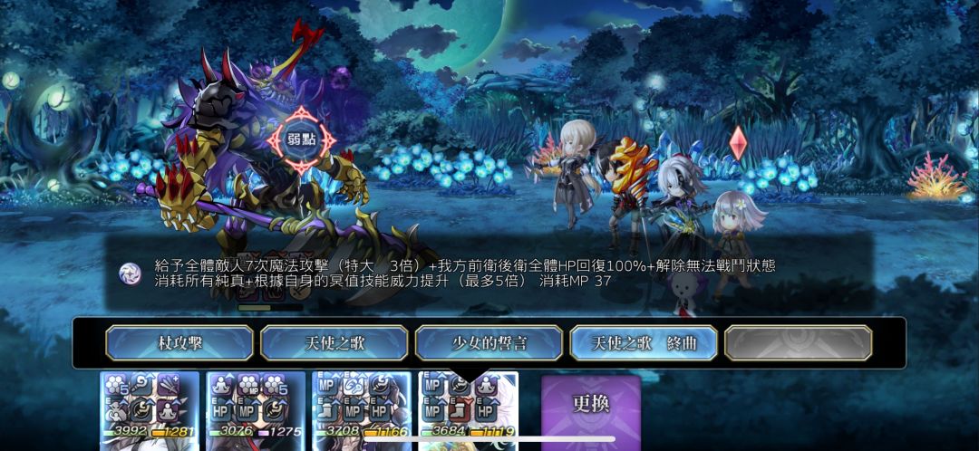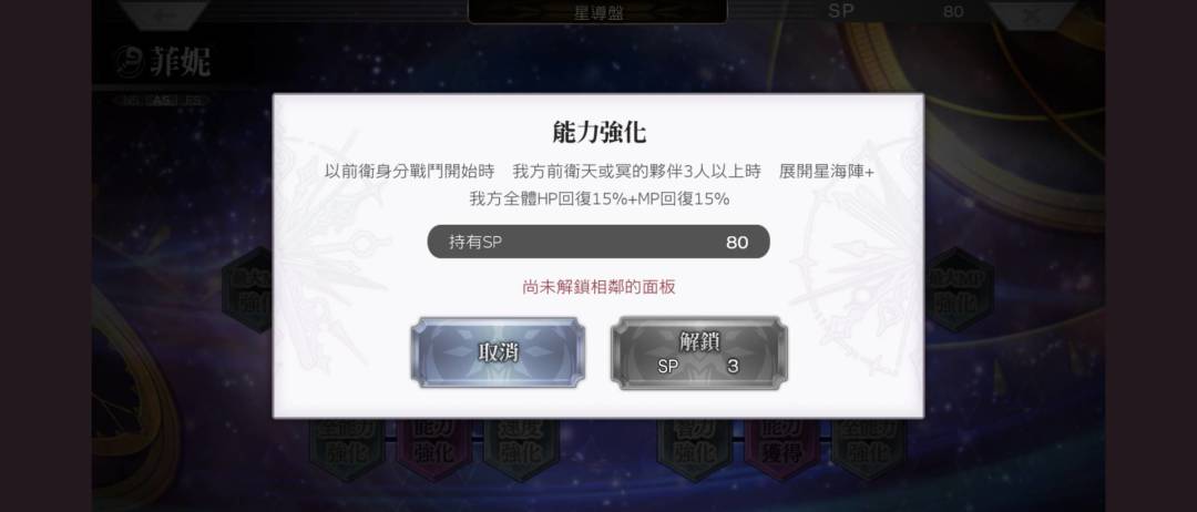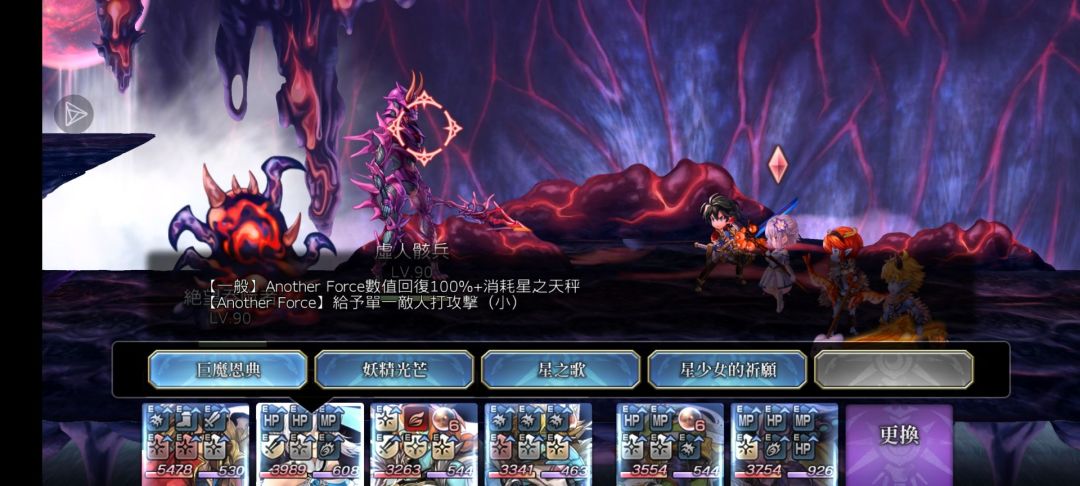 前卫展开战斗,且我方前排角色不是2天2冥时,展开星海zone+恢复15%HP与MP