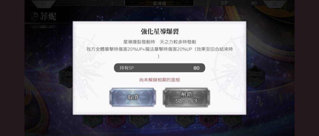 自身累计冥之力,星爆时天或者冥多加爆伤,一样多的时候是40%爆伤,这点和其他角色不一样。之前预想的三回合两星爆可能不是妹妹的正确玩法,毕竟星导后的妹妹开局自带星海zone不带渣猫爆不了一点(所以星导其实是debuff?