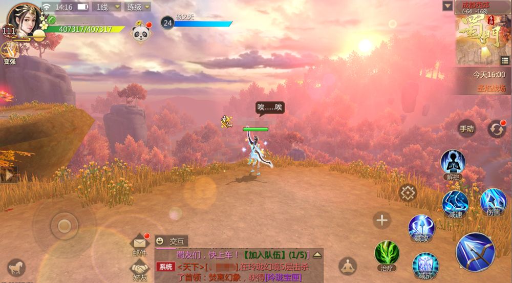 炽火莲会召唤坐骑将我们送至成都西郊的半山位置,成就也随之完成。