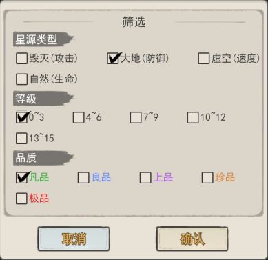 星源的品质可分为:凡品(绿色)、良品(蓝色)、上品(紫色)、珍品(黄色)、极品(红色)