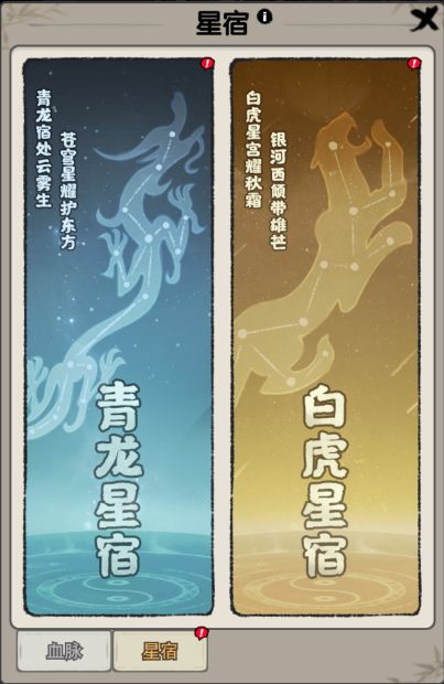 星宿可分为青龙星宿和白虎星宿,仙友们可根据自身情况选择对应的星宿升级哦~