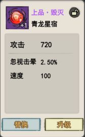 •青龙星宿主要提升的属性有:攻击加成、速度加成、忽视击晕、忽视反击、忽视闪避