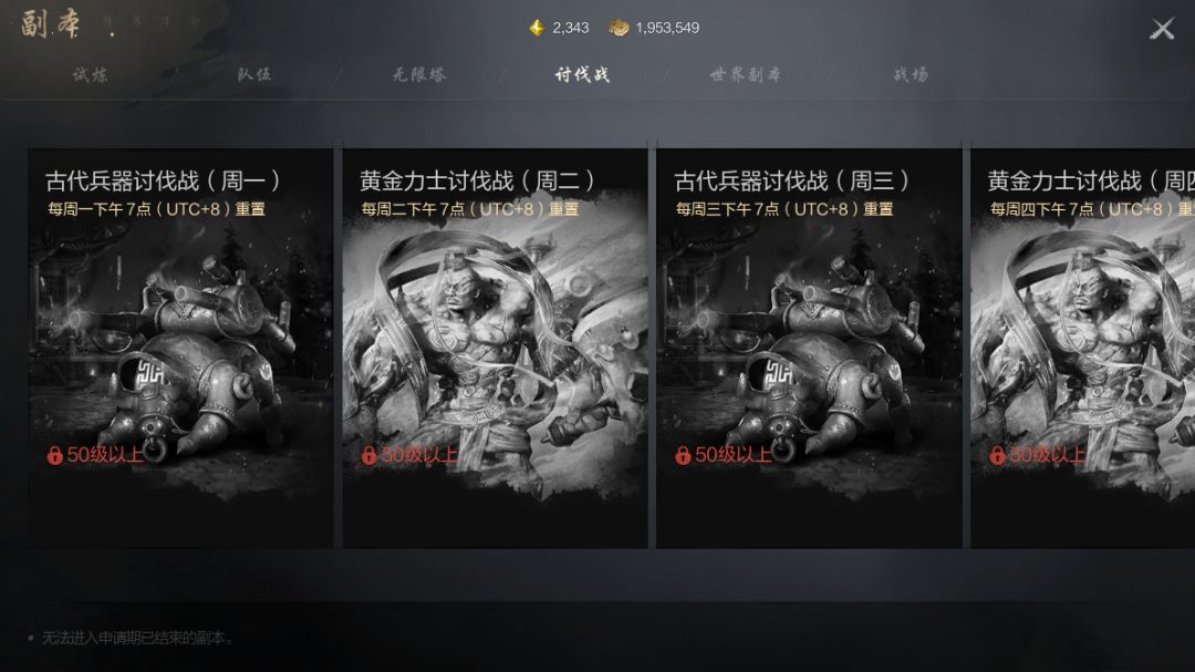简单了解下讨伐战副本,需要人物达到50级或以上才可以参与,他是属于组队副本,需要和队友一起配合来完成挑战。