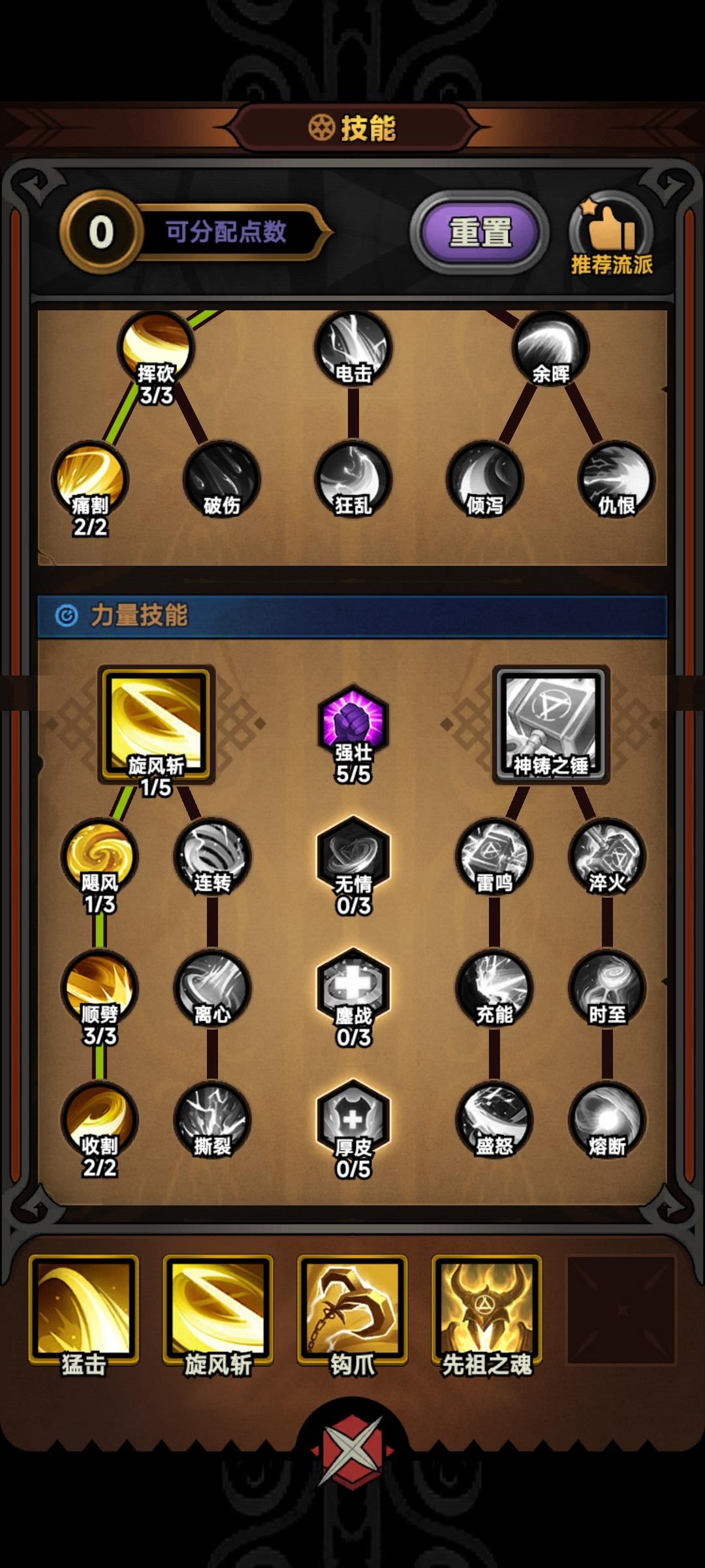 这里面选三件萃取就行,还是要看自身装备,有远古和太古的就穿身上,剩下的萃取就行,灵活运用。如果不用送的那个减速宠物的话就不用先祖王冠了。装备词条里面有冷却的一定要拿,最好是让先祖无缝衔接,不然没伤害的空档期很难受。技能的话我把关键的放出来,剩下的看个人喜好点,收割一定要点满,这是肉的关键,顺劈的话看自己,能常驻72%的攻速,不过肉眼感觉也并没有很大提升。