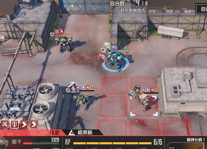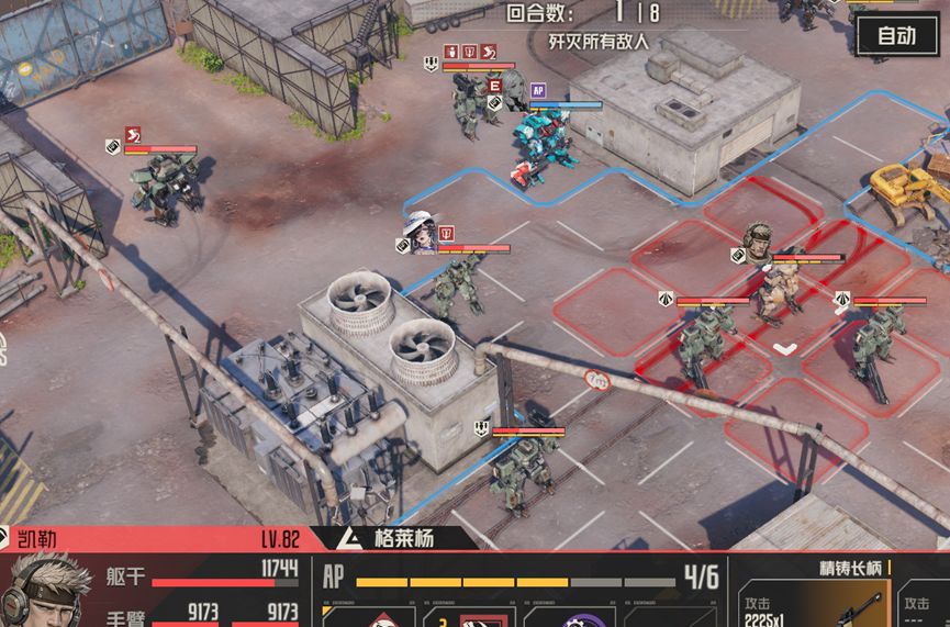 在消耗boss血量的时间里,专注消灭其他敌人即可,完全不用管boss,每回合续个石墨弹头即可,白月周围的格斗兵可以留着,以免没有白月大招没有攻击目标,无法定身boss