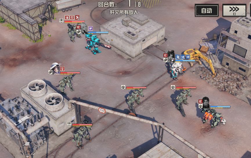 速战速决:要求第一回合击败两个boss之一,直接打的话比较困难,所以我们的思路是,让二者之间距离超过3个,强化状态失效。这个任务可以由白月来完成,白月站上边位置,消灭面前1个格斗兵后来到战术兵前面,将凯勒推到远处,这样两个boss的强化效果都会消失,剩下则是选择1个boss集火消灭即可完成成就(注意白月一定是推凯勒,并且是由上往下推,否则二者会依旧处在效果范围内)